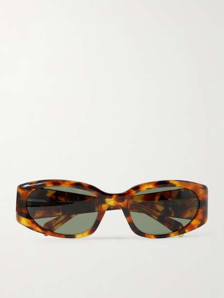 CELINE’s 'Journey' runway sunglasses are designed in a bold, tortoiseshell-effect frame with softly rounded lenses. The wide temples are detailed with the house’s 'Triomphe' plate in gold-tone metal, adding a signature finish.