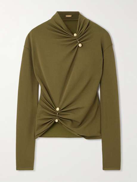 Cult Gaia's 'Callie' top is 'pierced' with gold-tone embellishments at the neck and hem that create artful ruching. It's knitted for a slim fit and has slightly dropped shoulders. Wear yours with midi skirts and straight-leg pants.