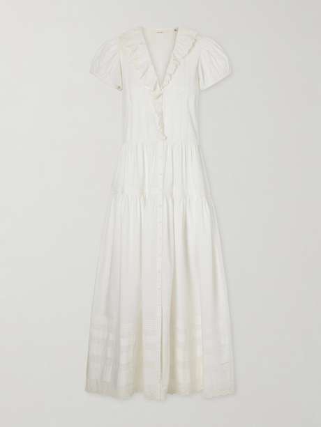 DÔEN Eliette ruffled brodeire anglaise-trimmed organic cotton midi dress