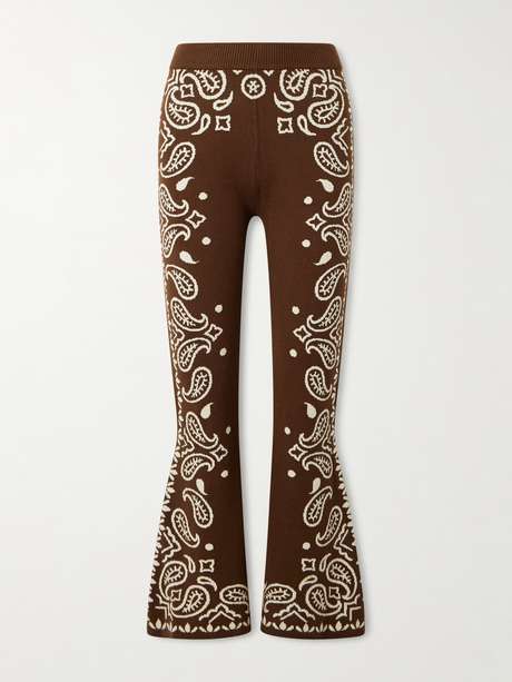 Farm Rio's pants are jacquard-knitted with paisley swirls for a bold, bohemian feel. Designed to sit high on the waist, they fit slim through the hips and thighs before dramatically flaring out at the cuffs. We have the coordinating sweater in our edit, too.