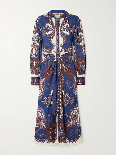 FARM RIO Arabesque belted printed LENZING™ ECOVERO™ midi shirt dress