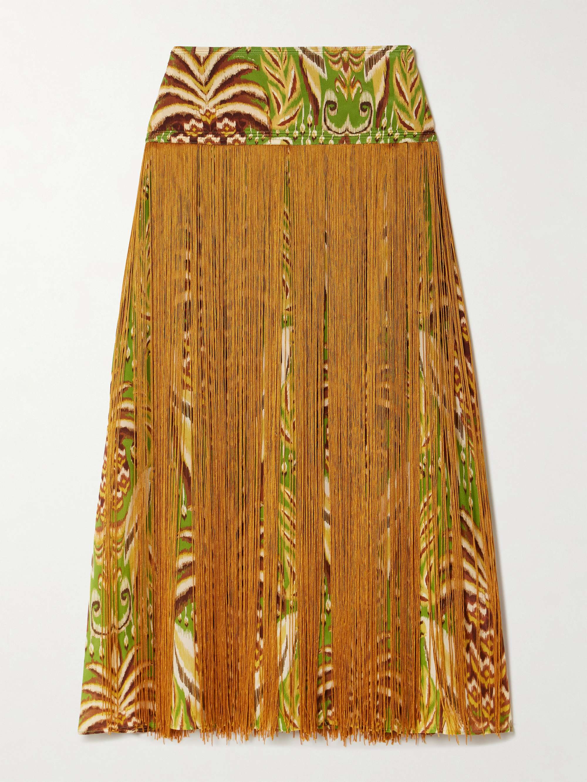 FARM RIO Fringed printed satin midi skirt