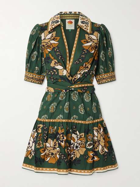 FARM RIO Ayla tie-front floral-print cotton-poplin mini dress