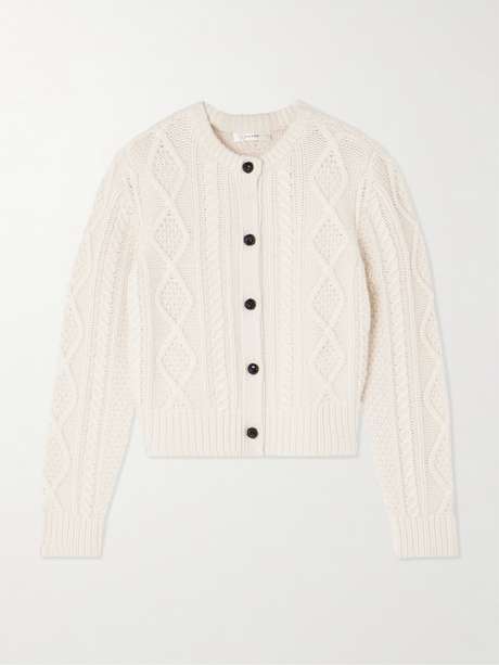 FRAME's cardigan is a true classic. Made from cream cashmere, it's knitted in cable stitches and finished with braided leather buttons. Wear yours with both denim and tailored pants.