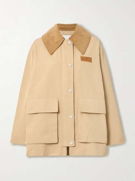 GANNI's jacket is a cool and refined take on a workwear staple. Made for a slightly loose fit from recycled-twill, it has an oversized corduroy collar and leather logo patch. The sizable flap pockets are perfect for stowing small essentials.