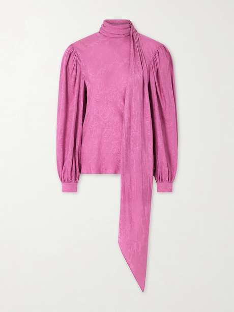 Gucci's blouse will effortlessly slot into your wardrobe, whether for work or the weekend. It's been cut in Italy from soft satin-crepe and is subtly patterned with jacquard florals. A long, sweeping necktie complements the voluminous sleeves.