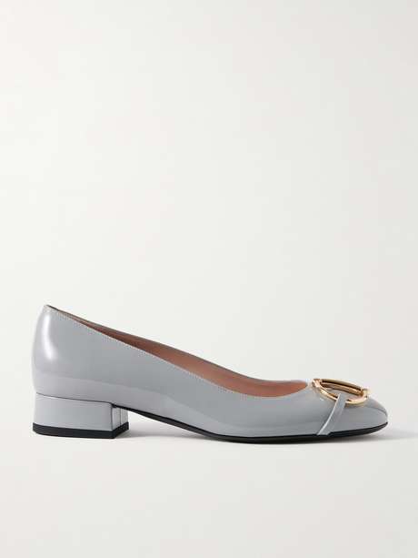 Gucci's pumps are topped with oversized halved versions of the label's signature horsebits - place your feet together to create a unified large one. They're made from smooth patent-leather and set on manageable block heels.