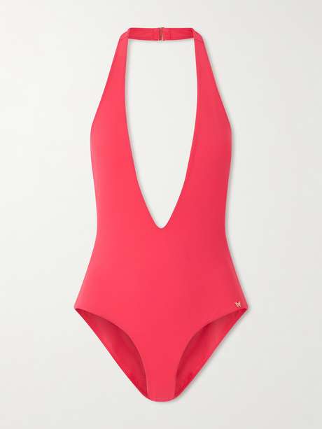 Kiki de Montparnasse's swimsuit dares to bare with its plunging neckline, low back and cheeky cut. Wear yours with a beach-ready hat and oversized sunglasses.
