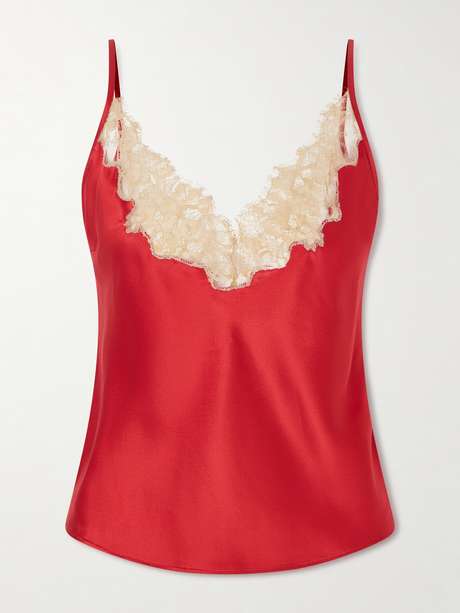 Kiki de Montparnasse's 'Orchid' camisole is bias-cut from lustrous silk-satin, in a deep ruby shade. It's trimmed with organic cotton-blend Leavers lace along the neckline which matches the detailing on the coordinating slip skirt.