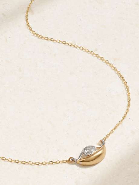 Beirut-based L'Atelier Nawbar has been family-run for four generations, since its 1891 founding. Handmade from 18-karat yellow and white gold, this 'Salvatore' necklace is inlaid with a single sparkling diamond totaling 0.15-carats. Layer it with other pieces from your collection.