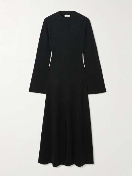 Le Kasha's midi dress is a lightweight layer that's perfect for transitional weather. Ribbed for structure, it's knitted from cashmere, a natural fiber prized for softness and natural heat retention. Wear yours with tights and knee boots.