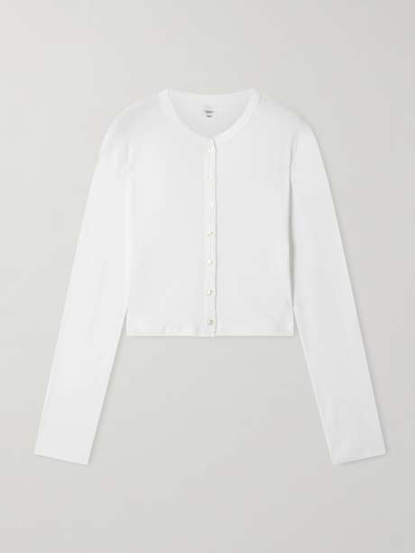 LESET's 'Nando' cardigan is made from cotton-jersey and has a fine, baby ribbed finish. Wear it solo, buttoned-up to the crew neck, or left open over a camisole.