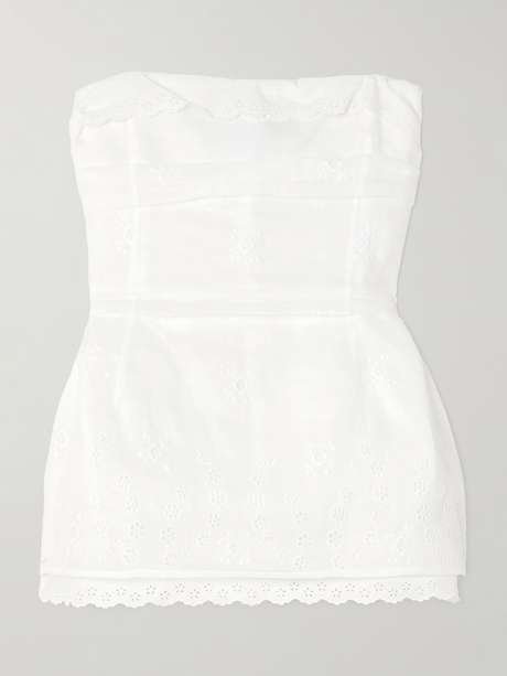 MAGDA BUTRYM Scalloped broderie anglaise cotton-blend peplum bustier top