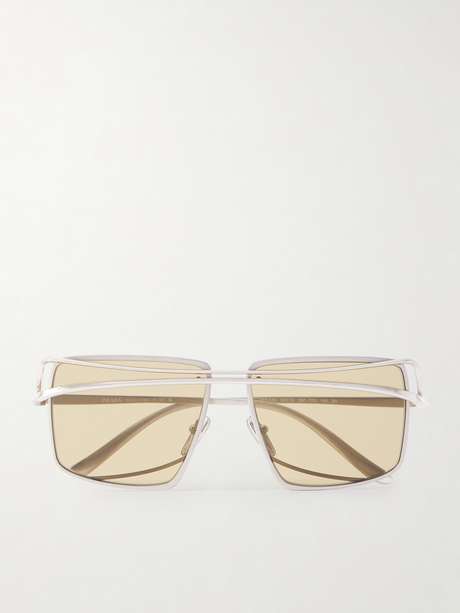 A tool of self-expression, Prada Eyewear's sunglasses are defined by silver-tone square frames with a sweeping double nose bridge that commands plenty of attention. They're fitted with beige-tinted UV-protective lenses and subtly etched with the house's moniker at the temples.