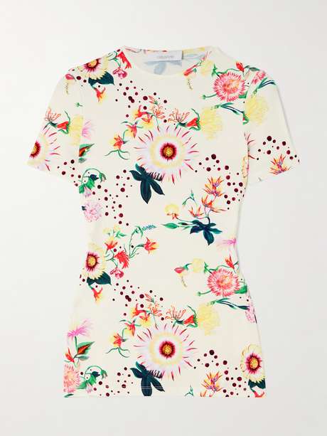 Rabanne's T-shirt is printed with a vibrant bouquet of flora and fauna. It's made from smooth jersey and cut for a close fit. Wear yours with the matching maxi skirt.