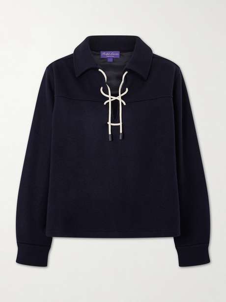 Ralph Lauren Collection's sweater takes cues from nautical knits with its lace-up neckline. It's made from blissfully soft cashmere-blend and has a relaxed fit.