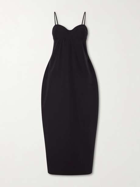 RÓHE's 'Dahippa' dress is shaped with exaggerated hips, creating a defined hourglass silhouette. Crafted from cotton, it has a structured bodice with softly defined cups, providing support.