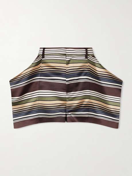Sacai's shorts are defined by a sculptural silhouette - the horizontal stripes enhance the effect. They're made from lustrous satin in an earthy palette which grounds the exaggerated proportions.