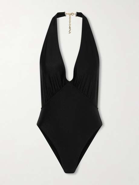 A swimsuit like SAINT LAURENT's always feels elegant. It's made from stretch fabric with a plunging halterneck, and has high-cut legs that subtly lengthen your frame.