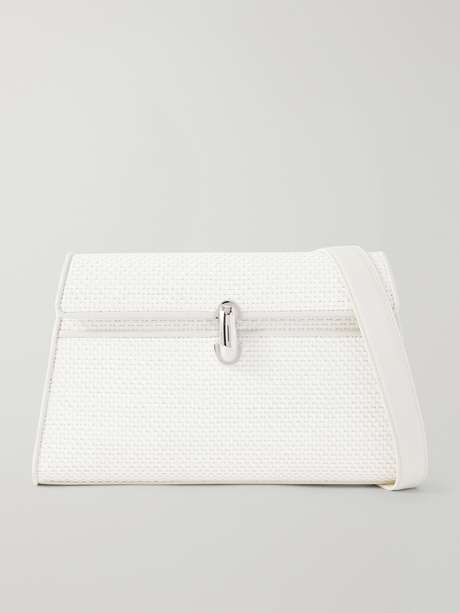 SAVETTE Symmetry leather-trimmed woven raffia shoulder bag