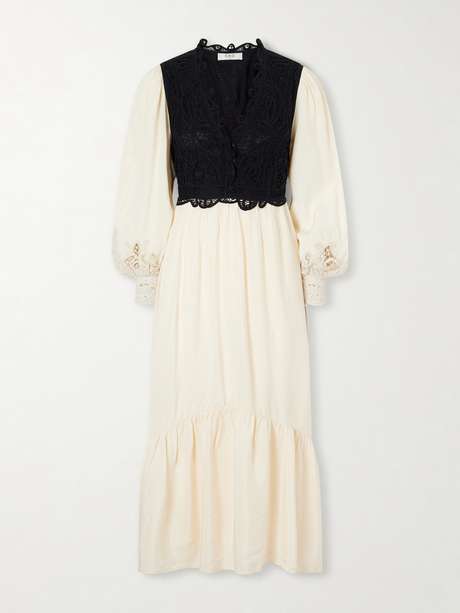 SEA Adelina woven and guipure lace maxi dress