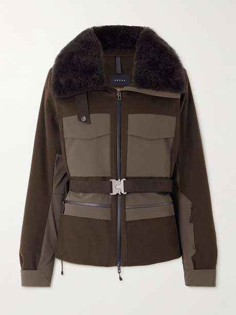 SEASE Belted plush and twill-trimmed wool and cashmere-blend felt down ski jacket