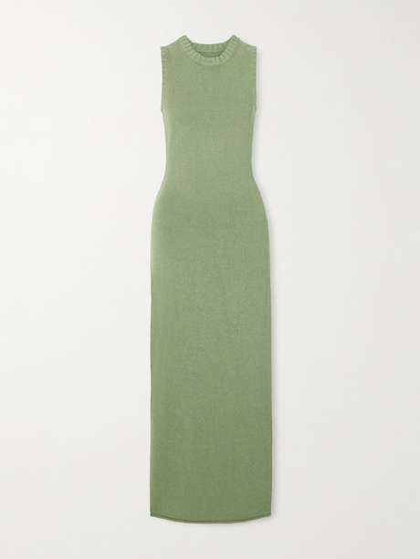 SIR.'s dress is designed in a long column shape, so it creates a gorgeous statuesque silhouette. It's knitted with paper yarns for lightness and breathability and is ribbed at the armholes and crewneck.
