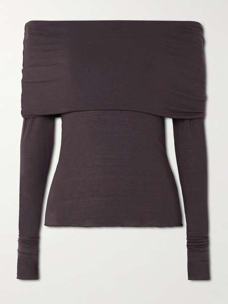 SKIMS' long-sleeve top is made from stretch-modal and cashmere-blend that has a slightly sheer finish. The fold-over neckline bares your shoulders and collarbones in such a sophisticated way.