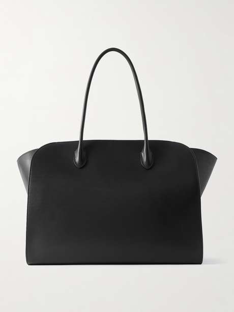 The Row's 'Marlo' tote is modeled on the brand's iconic 'Margaux' style. Made in Italy from black textured-leather leather, it has the same rounded shape with expandable sides and plenty of space inside for your phone, wallet, sunglasses and planner.