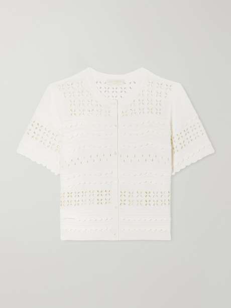 ULLA JOHNSON Abriana eyelet-embellished knitted shirt