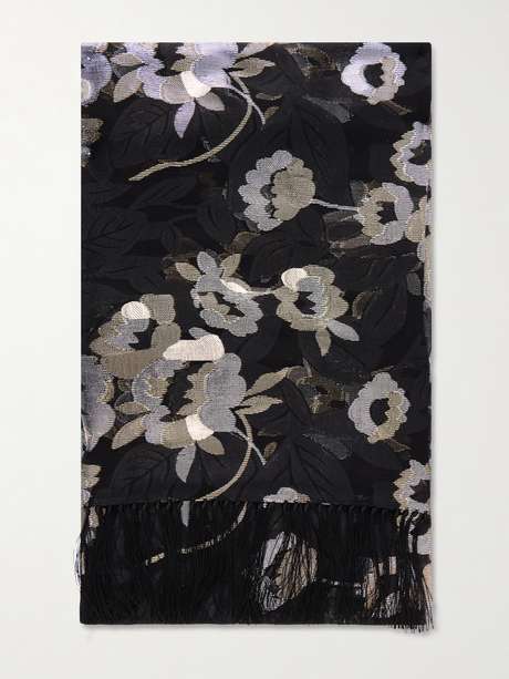 VALENTINO GARAVANI Fringed floral-jacquard silk-blend scarf
