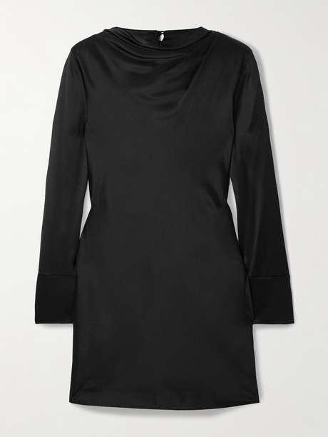Veronica de Piante's 'Amal' dress is elegant, chic and looks completely effortless. Made from liquidy black silk-blend satin, it has a cowl neckline and slim profile. The elongated cuffs and covered buttons are considered finishing touches.