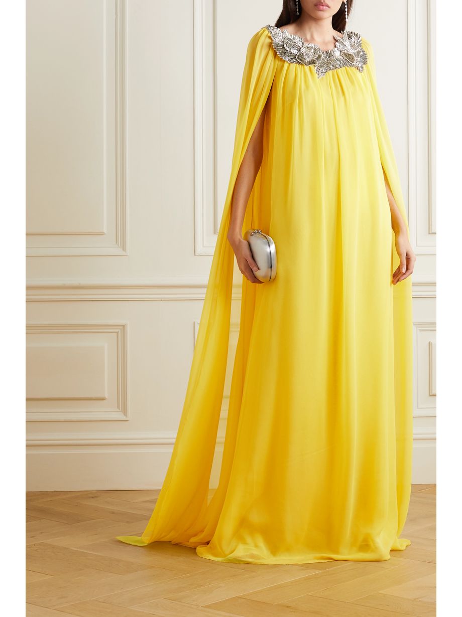 Cape-effect appliquéd silk-chiffon gownAED 16,515.61