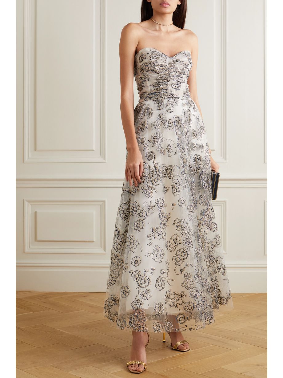 Strapless glittered tulle gown