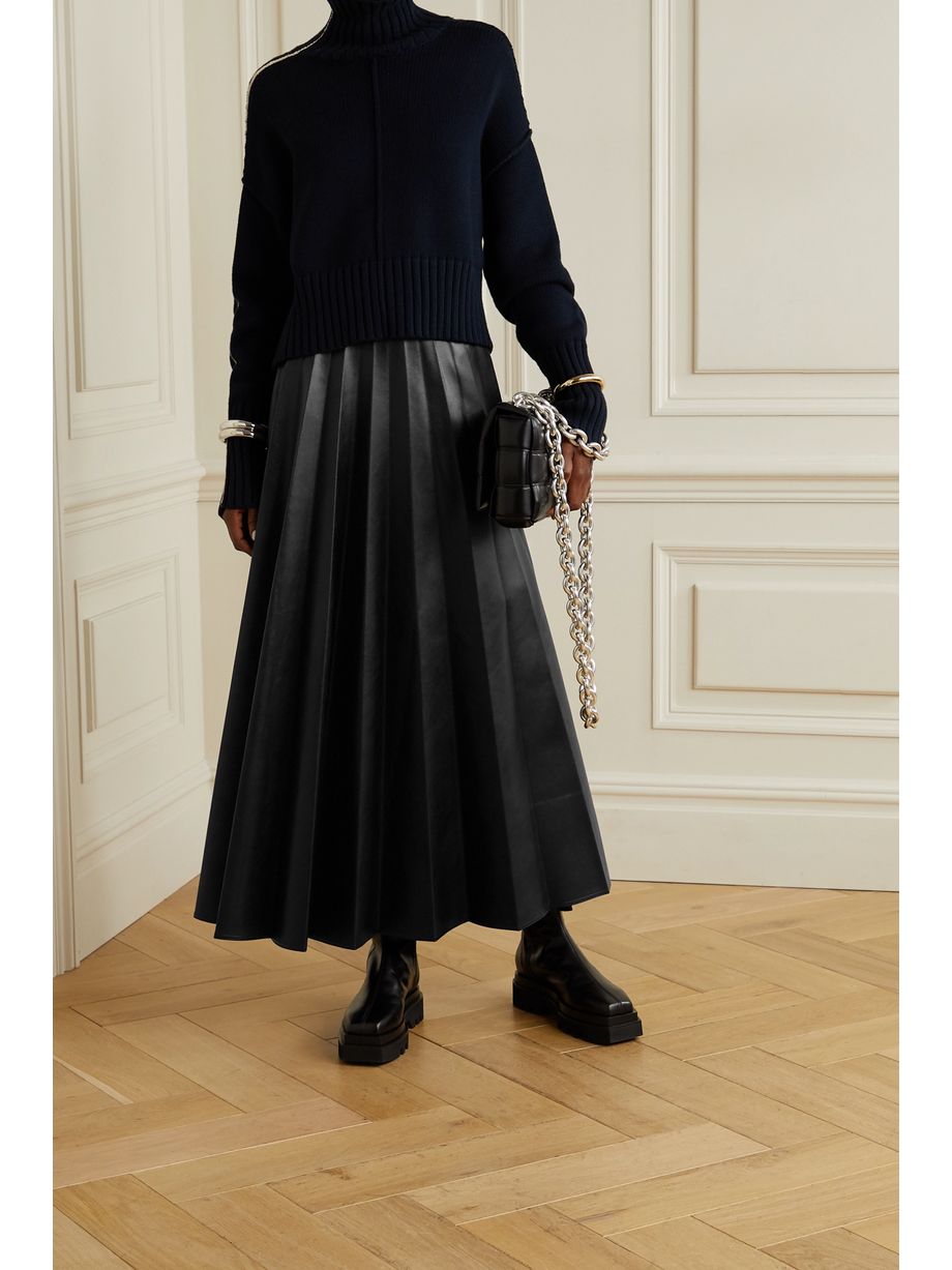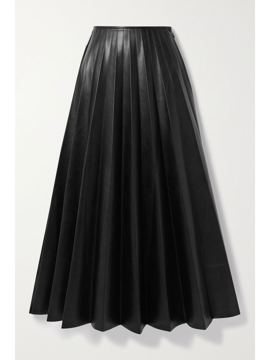 Paneled pleated vegan leather and satin-crepe maxi skirt