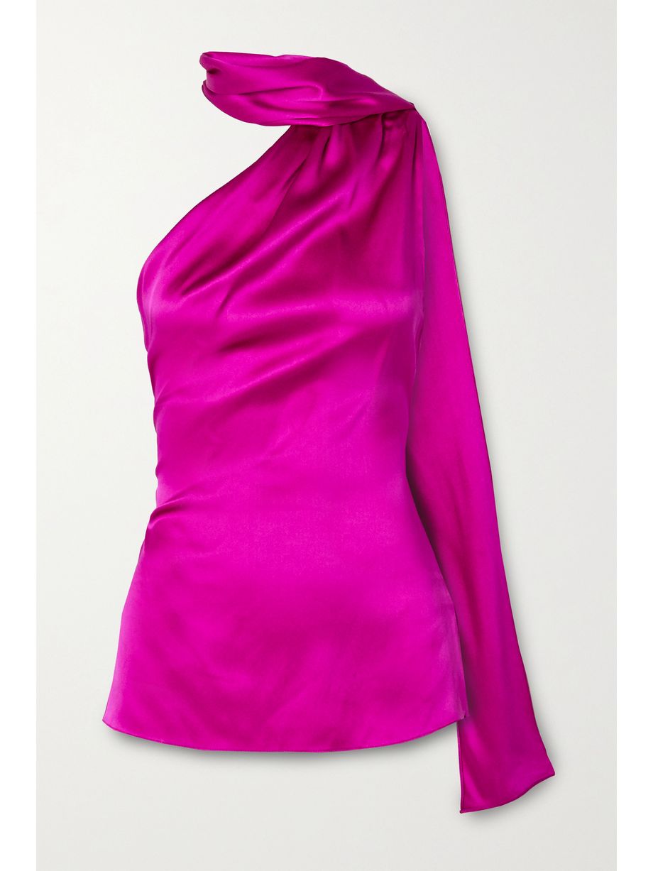 One-shoulder draped silk-charmeuse top