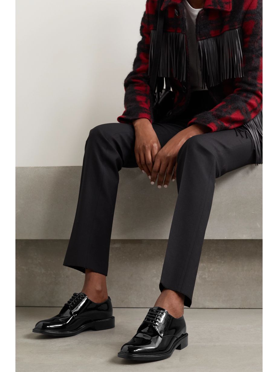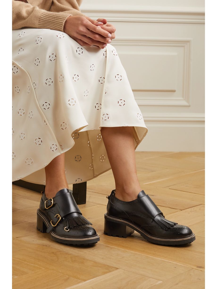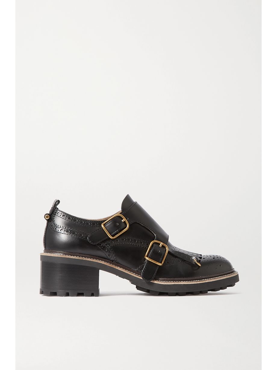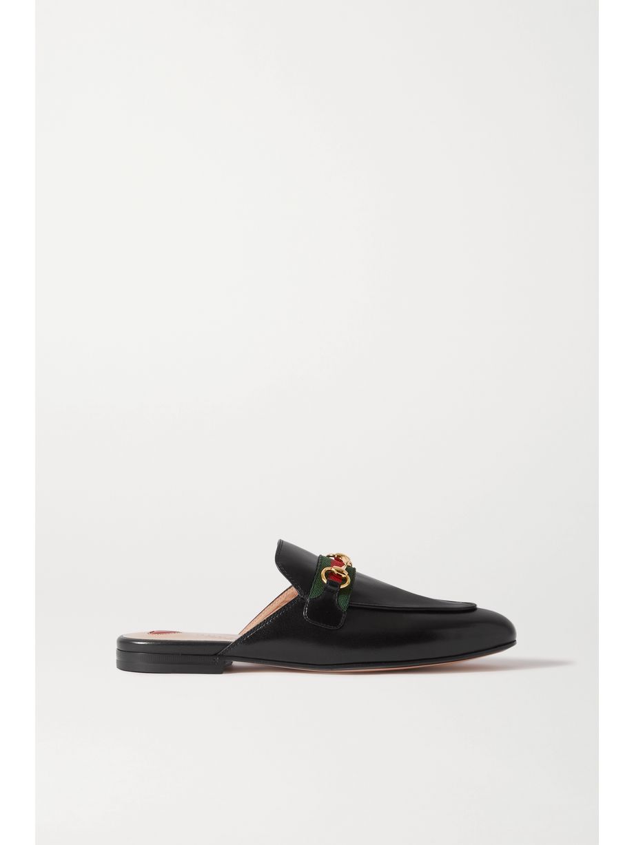 Brixton horsebit-detailed webbing-trimmed leather collapsible-heel loafers
