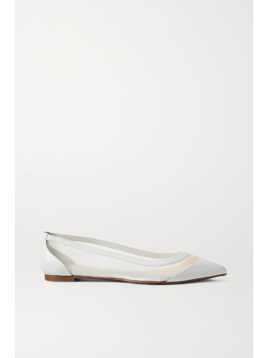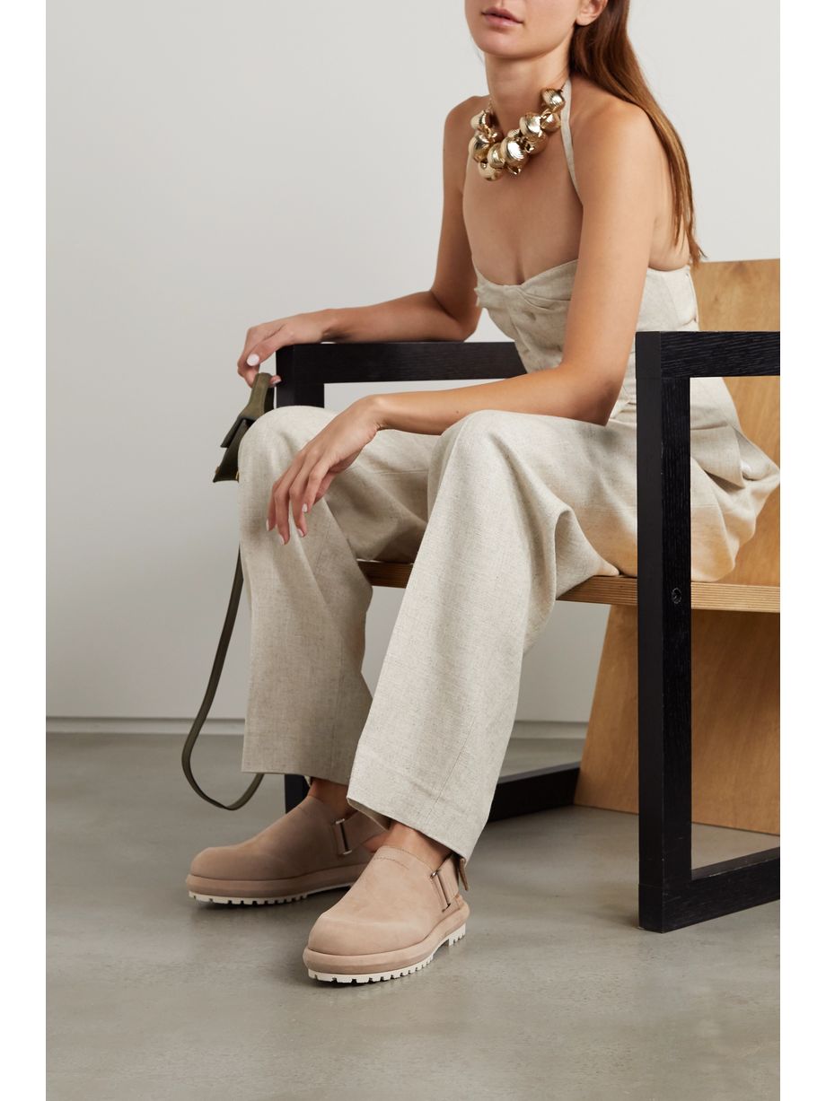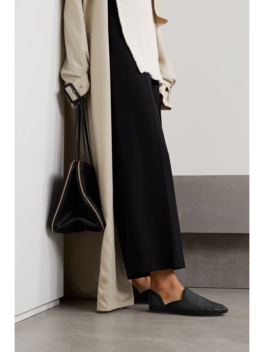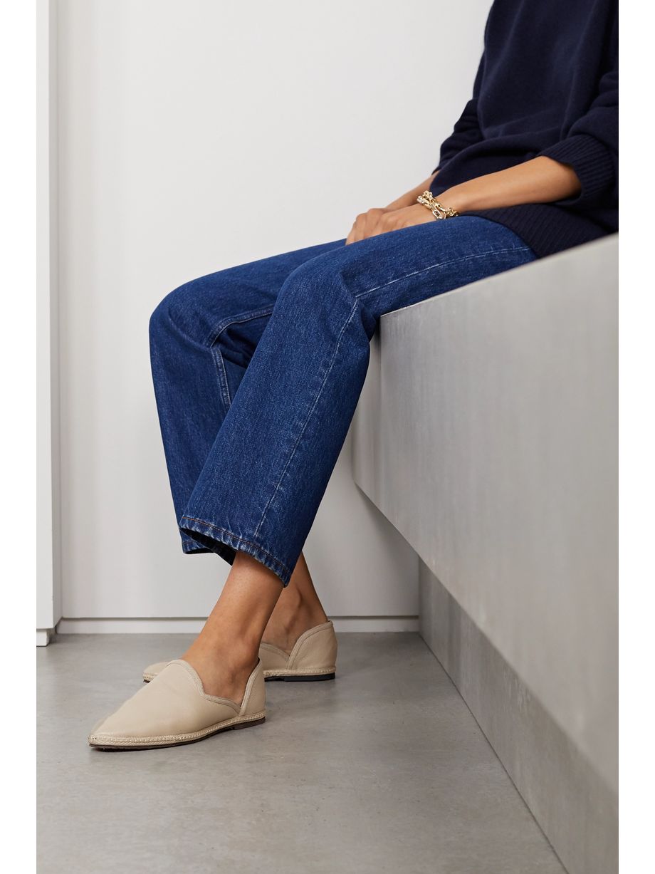 Fairy grosgrain and suede-trimmed cashmere slippers