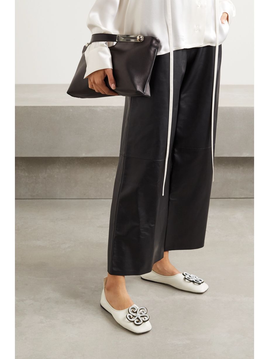 Pilar leather-trimmed embellished logo-detailed canvas espadrille slides