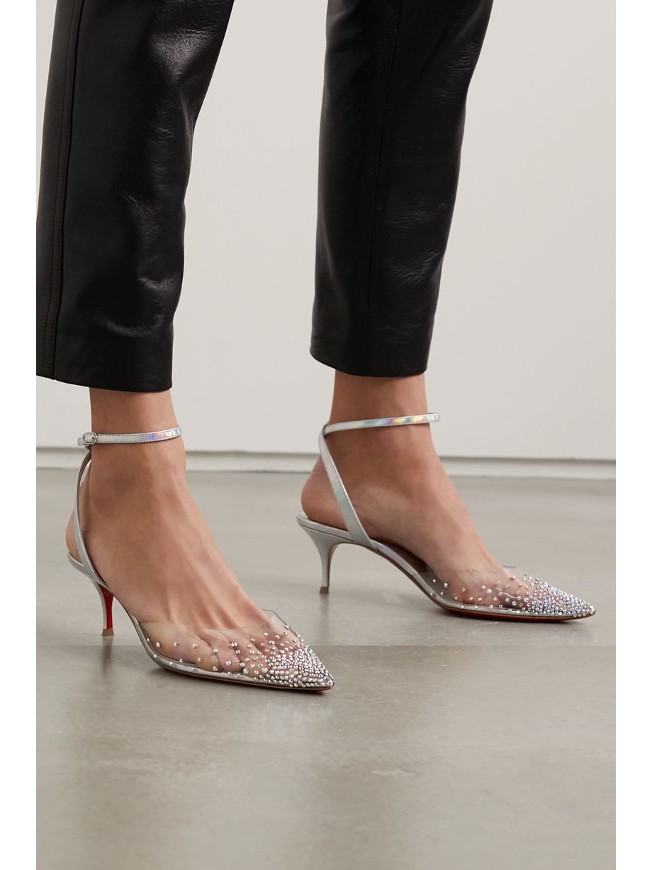 Spikaqueen 55 crystal-embellished PVC and iridescent leather pumps