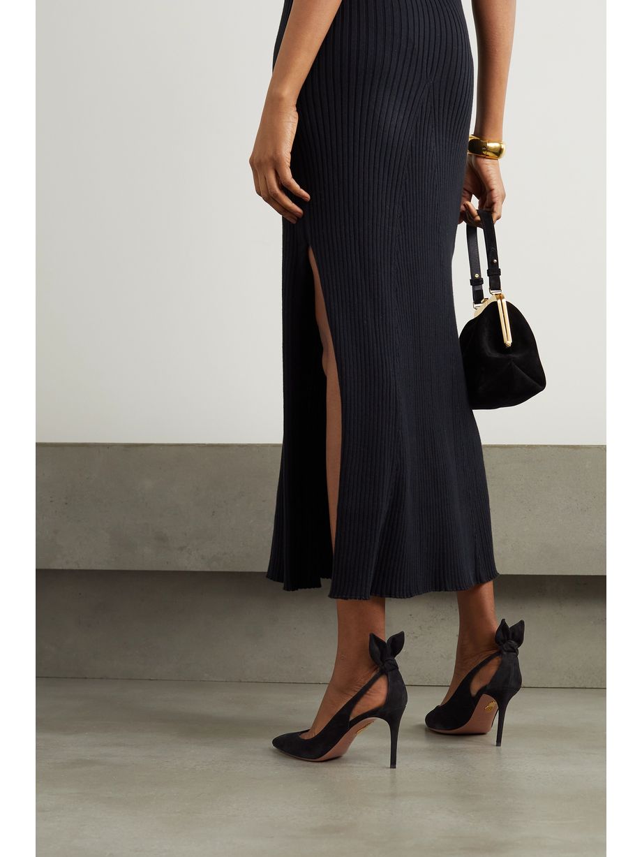 Galvati Strass 85 metallic leather trimmed mesh pumps