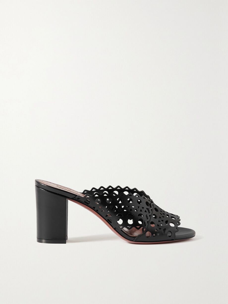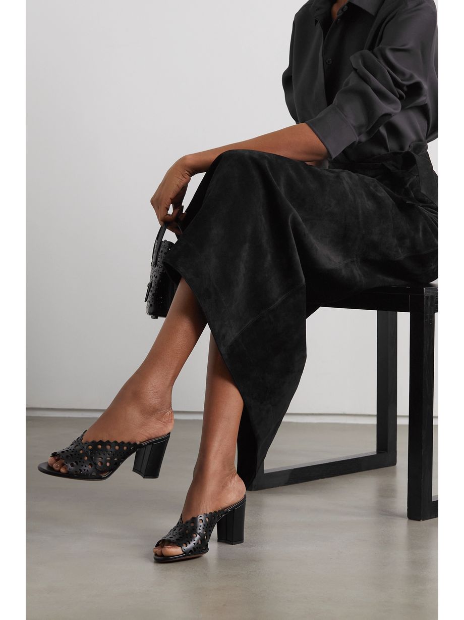 70 leather-trimmed fishnet mules