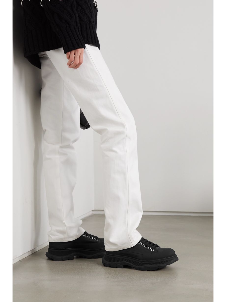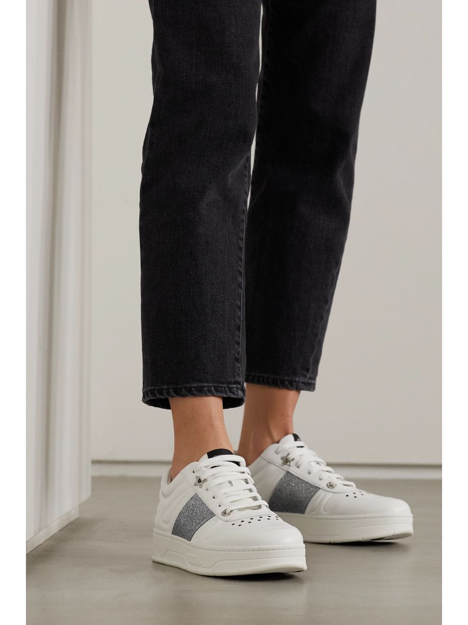 Bryce distressed metallic-trimmed snake-effect and smooth leather sneakers