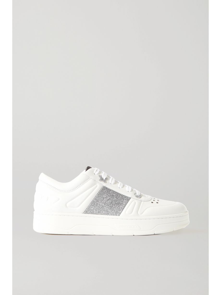 Court Classic appliquéd metallic-trimmed leather sneakers