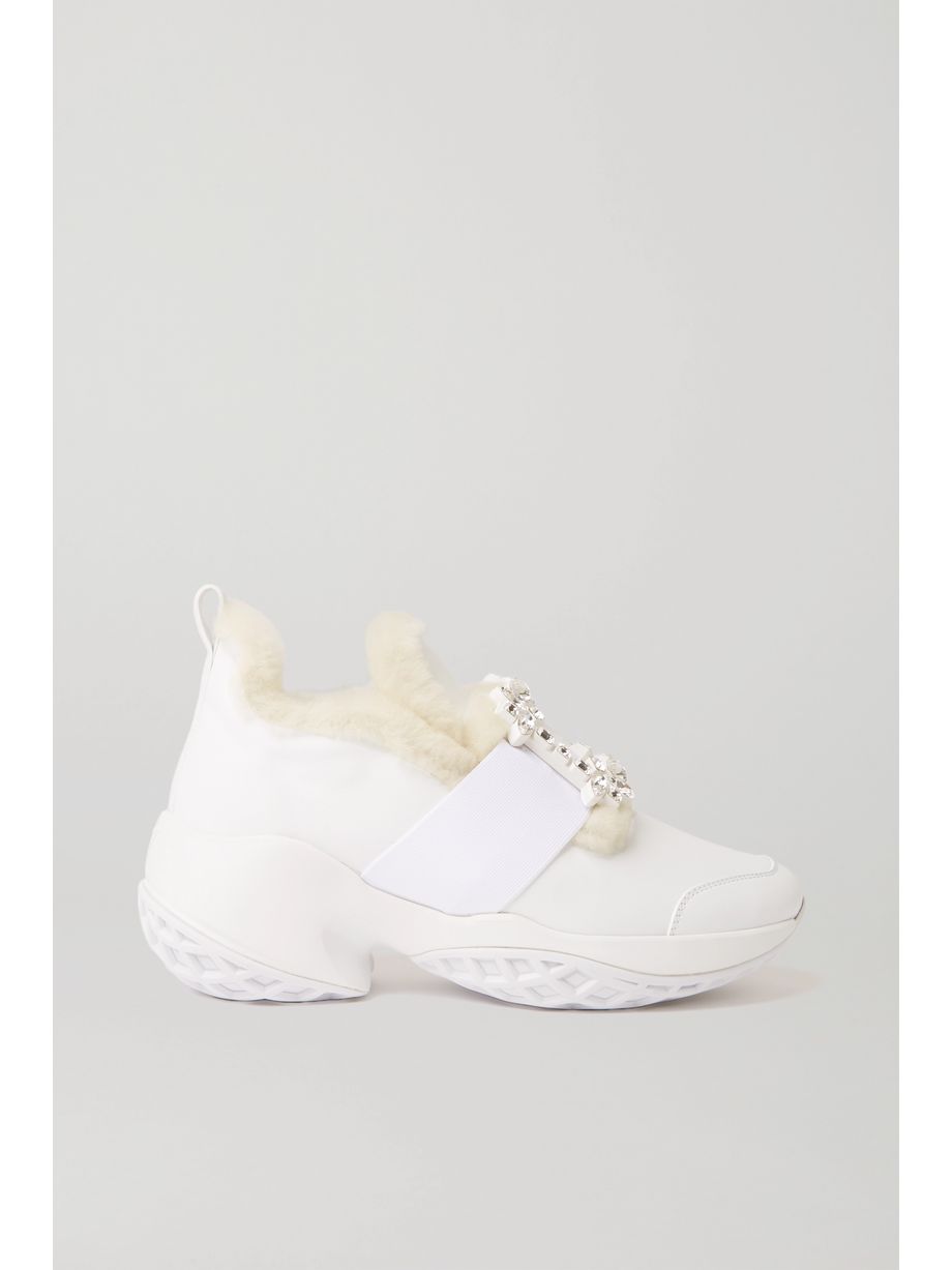 Viv' Run crystal-embellished shearling-trimmed leather sneakers