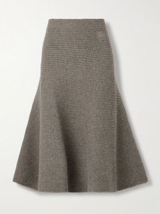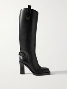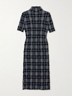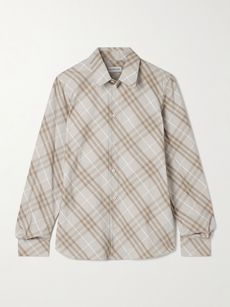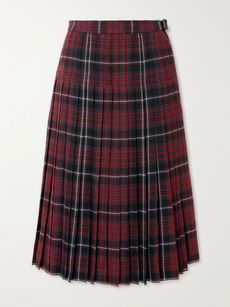 See also the equestrian boots: great for traipsing around a muddy field, but equally at home navigating the office. Those tartan kilts? Very Princess Diana at Balmoral, but also very you, right now, at a busy bar in London’s Soho. Speaking of Balmoral, there’s something very reminiscent of Queen Elizabeth II when a silk foulard is tied around the neck. Although it looks great in the hair or dangling nonchalantly from a tote, too. Elsewhere, slim-fit jodhpurs, or a flared ribbed-knit skirt and a matching sweater, also have home-or-away potential. It’s all about the mix-and-match attitude, which, like the rain, is very British – and very Burberry.