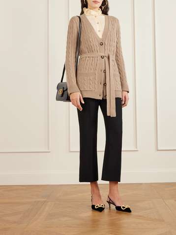 Ruffle-trimmed embellished cable-knit cashmere sweater