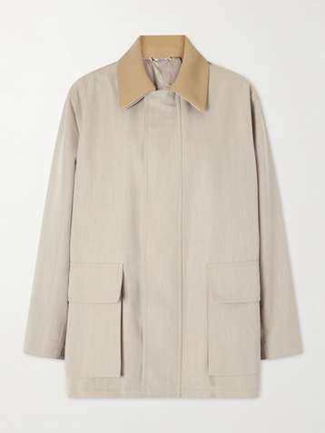 Leather-trimmed wool-canvas jacket