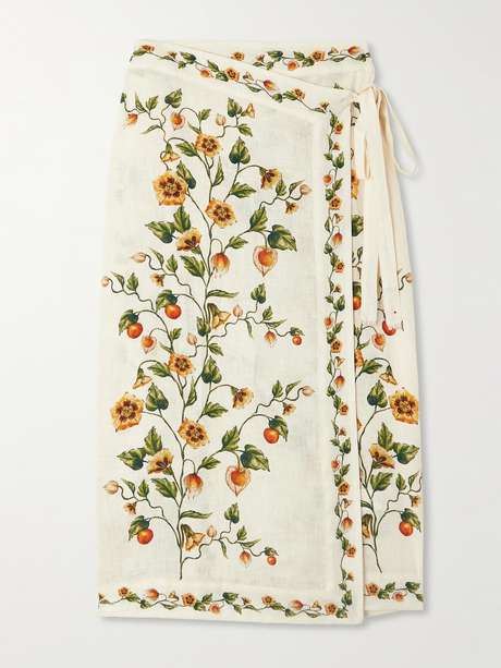 Agua by Agua Bendita's 'Luna' midi skirt will have you dreaming of your next vacation. Made from breezy linen, it's patterned with delicate florals and has a wrap design that ties at the side. Wear it over a bikini or swimsuit.