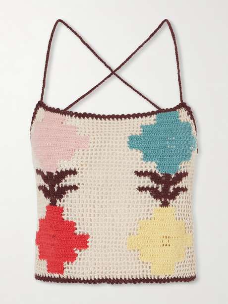 Alix of Bohemia’s 'Eliza' top has been hand-knit in India by skilled artisans, with the print, dye and weave subtly differing from piece to piece, making every one unique. Made from crochet cotton, it’s patterned with multicolored motifs and set on slender halterneck straps finished with tassels.